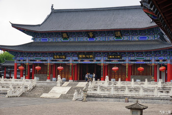 木府的建制几乎是参考北京的故宫缩小修建的。故宫背靠景山,而木府就背靠狮子山了