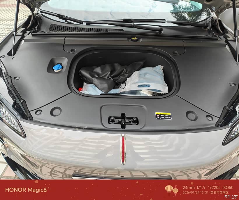 前备箱:别看它不大,但放得下折叠收纳箱、充电枪和应急工具,让主后备箱可以专心放大件。