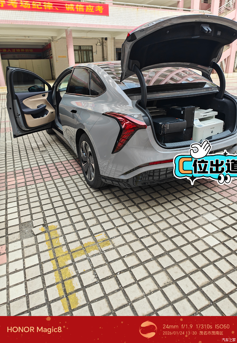 我特意把最重的主机放在后备箱底部,打印机靠在后排椅背,用自带的网兜和防滑垫固定,路上急加速或过减速带时,设备纹丝不动。