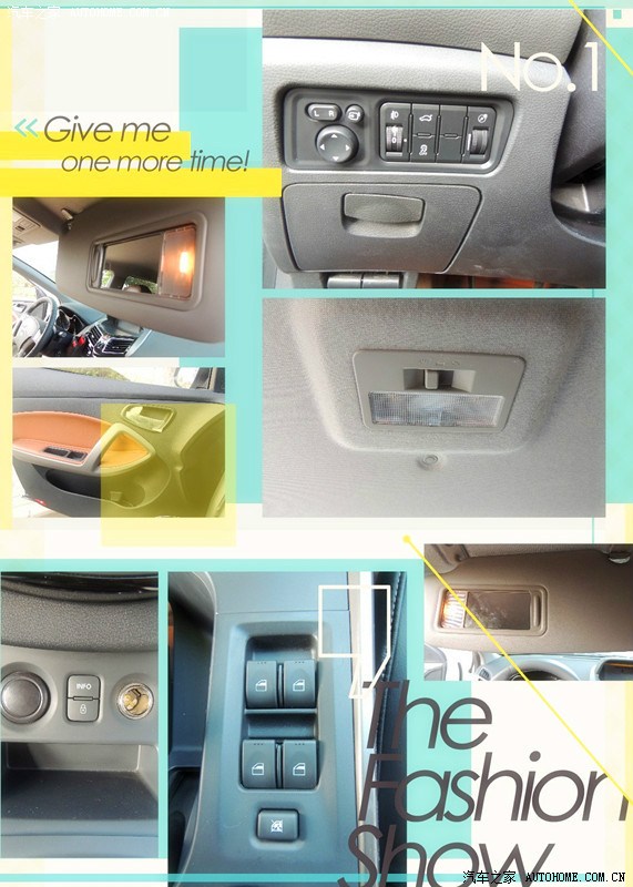 1、后视镜安装位置有点低,有时候觉得好像有点影响视线,后排中间有点高,后排座椅偏软;