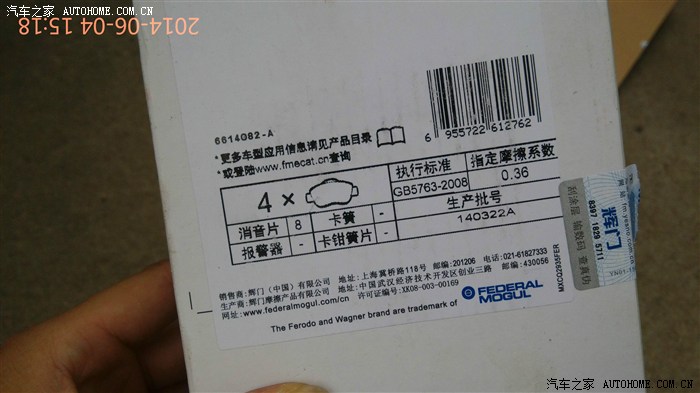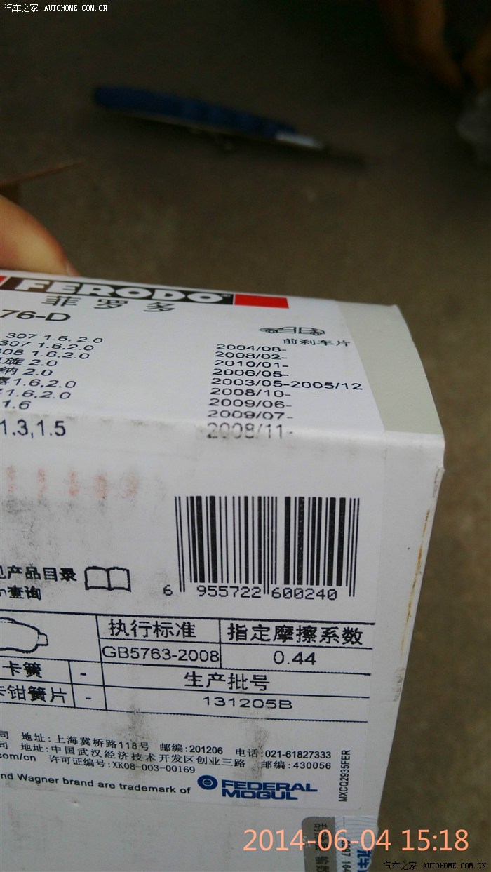 灰灰53000多了,考虑该换刹车片, 通过咨询各位家人最终选定菲罗多,某猫买的,,价格还可以,