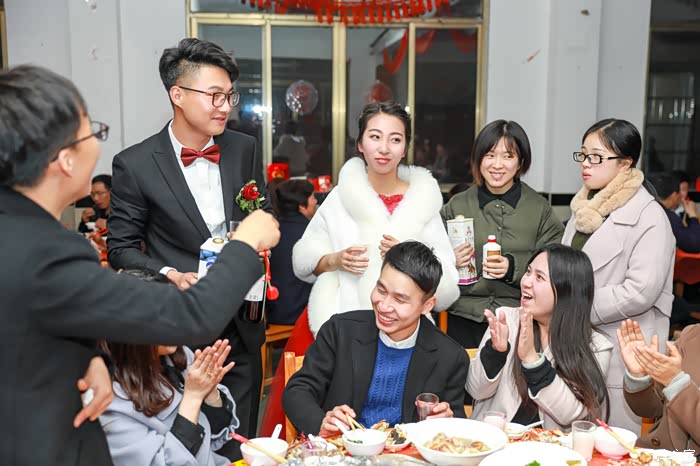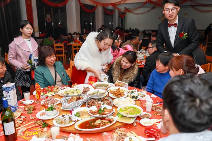 吃了午宴 德高望重的长辈开始喂上轿饭了