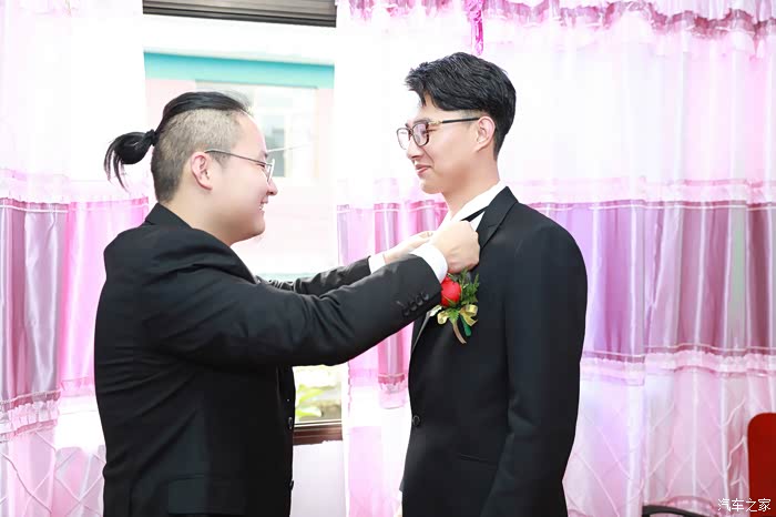新郎在打扮了额 要帅帅的去接美美的新娘