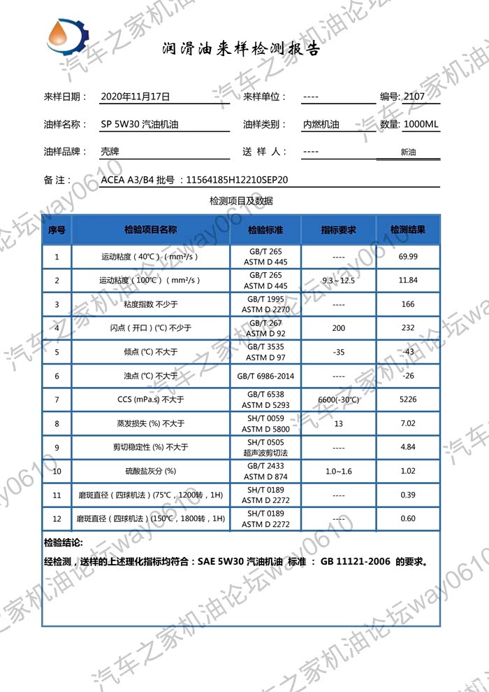 4.低温动力粘度CCS,新油5226,废油4675,考虑到燃油稀释导致的CCS降低的量(按400算),那么废油就是4675+400=5075,相比新油没有升高,说明废油的氧化衰减非常轻,如果氧化比较严重,那么CCS是会有较大升高的。