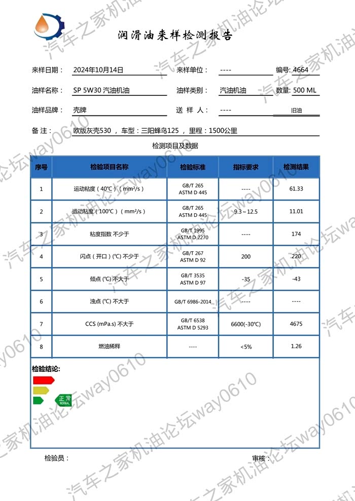 ,我是常年混机油论坛的way0610,5月份买的小踏板摩托车目前已经3500公里了,换了3次油,这次把跑了1500公里的废油检测一下,看看衰减情况,以及这款发动机的燃油稀释情况。