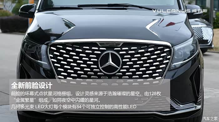 前脸的环幕式点状星河格栅组,设计灵感来源于浩瀚璀璨的星空,由128枚金属繁星”组成,如同夜空中闪耀的星河。几何多光束 LED大灯每个模块有84个可独立控制的高性能LED