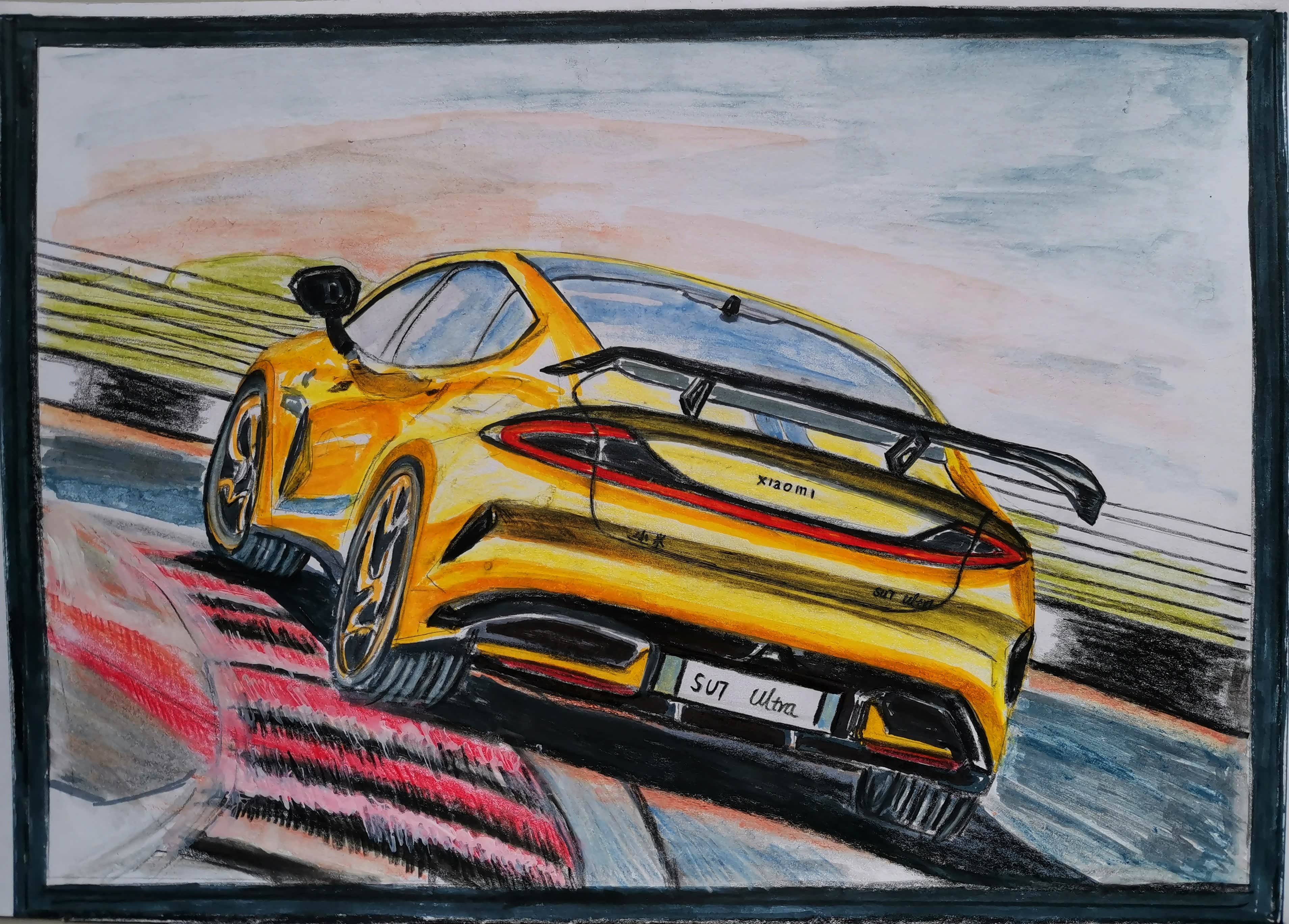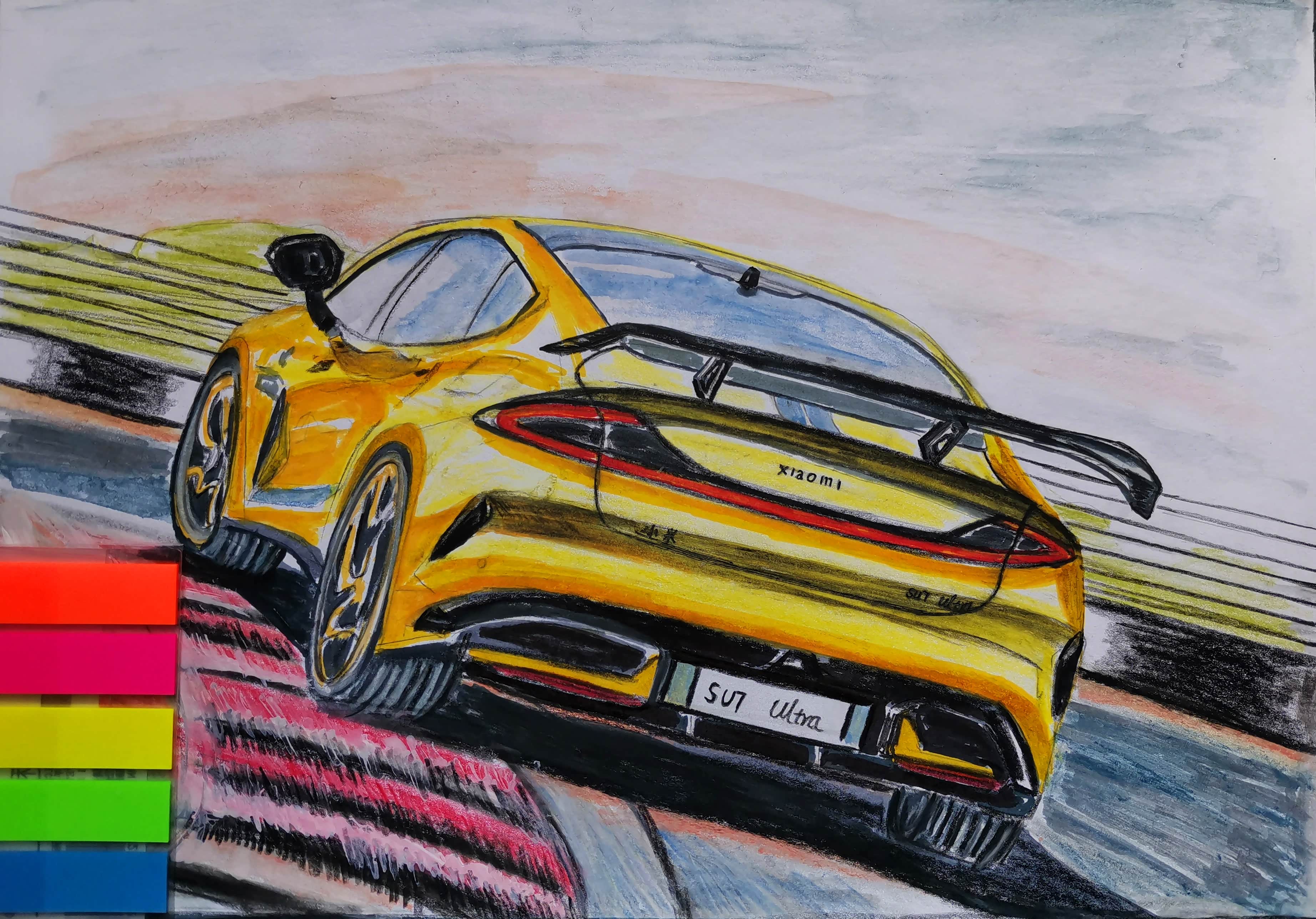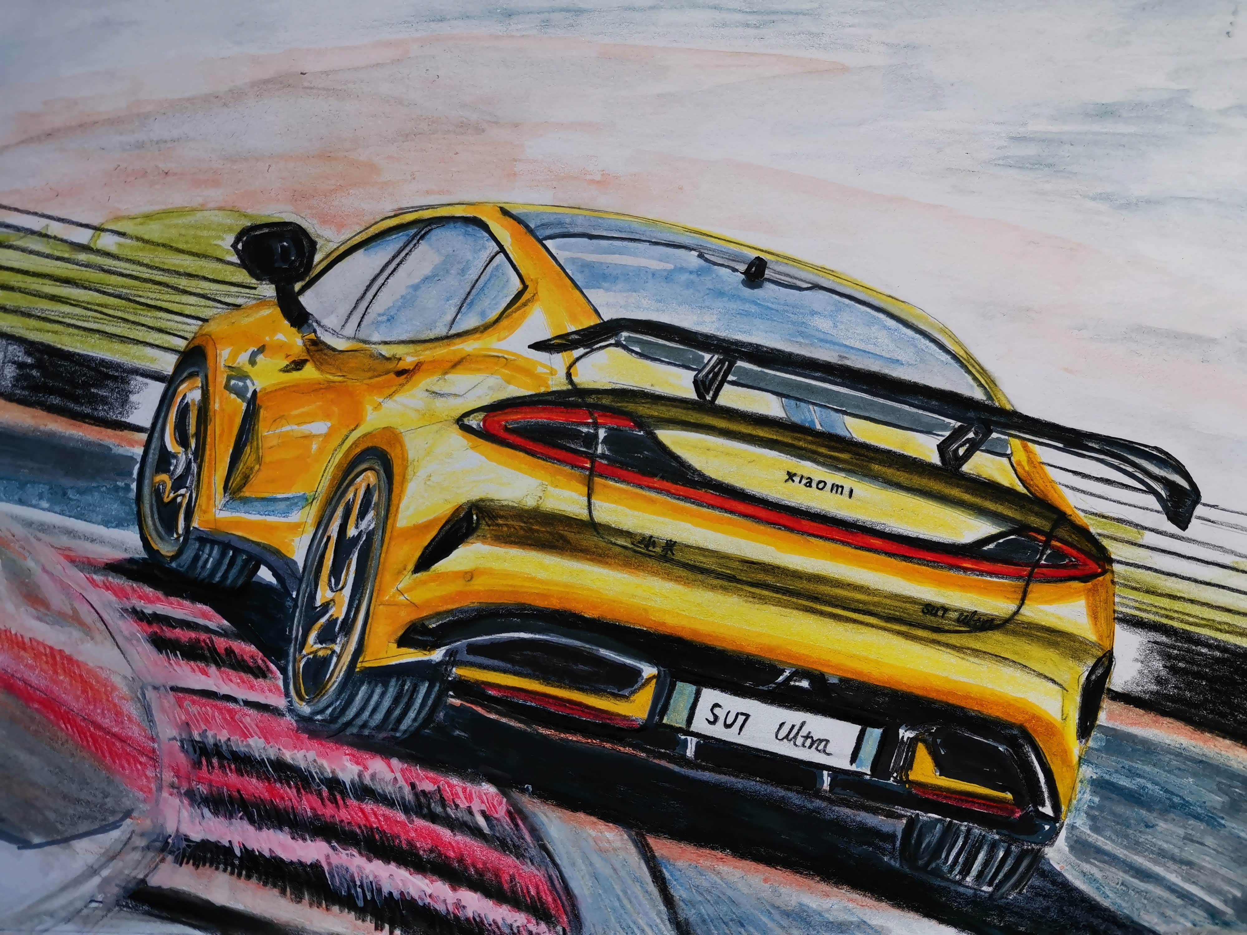 近日,小米SU7 Ultra 原型车在纽北跑出了6分46秒874的好成绩,成为目前纽北最速四门车。随后,小米SU7 Ultra量产车发布预售价。此次,咱们通过手绘的方式来一展小米SU7 Ultra的赛道风采!首先,来欣赏几张网上美图。