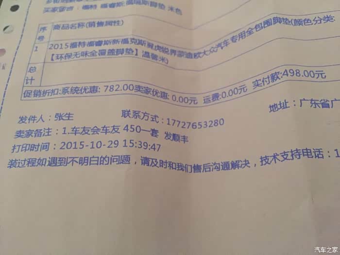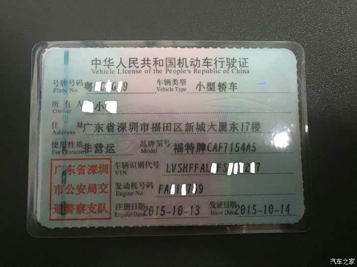 2015年9/29订的车(深圳共城福特),2015/10/13号上的牌