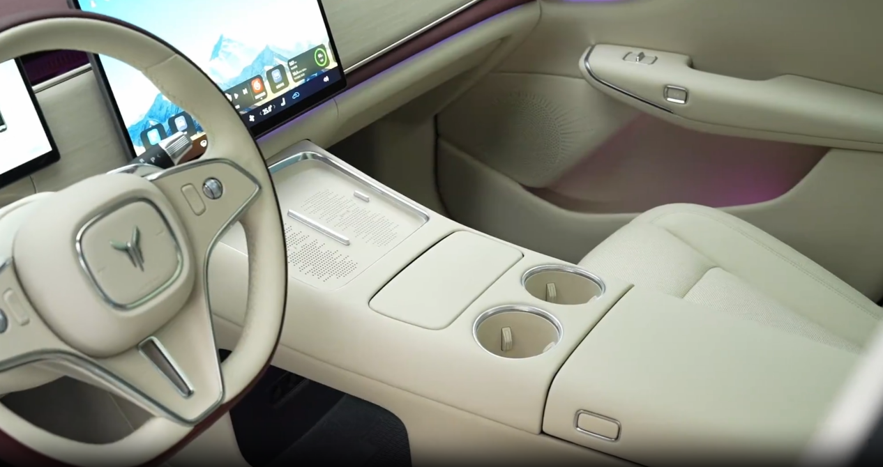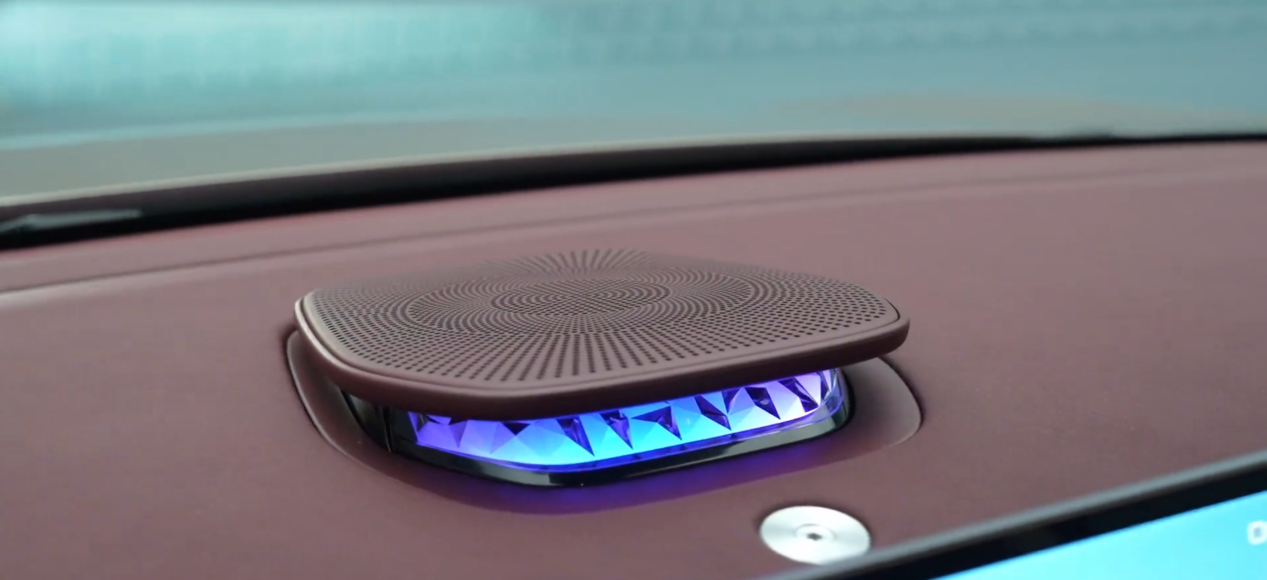 细节设计也给车增添了质感。仪表台上增加了一个立起来的扬声器,带有氛围灯效果,看起来像宝石;门的内饰板设计更加丰富,扬声器周围做了打孔设计,并在内部增加了氛围灯,更显档次感。