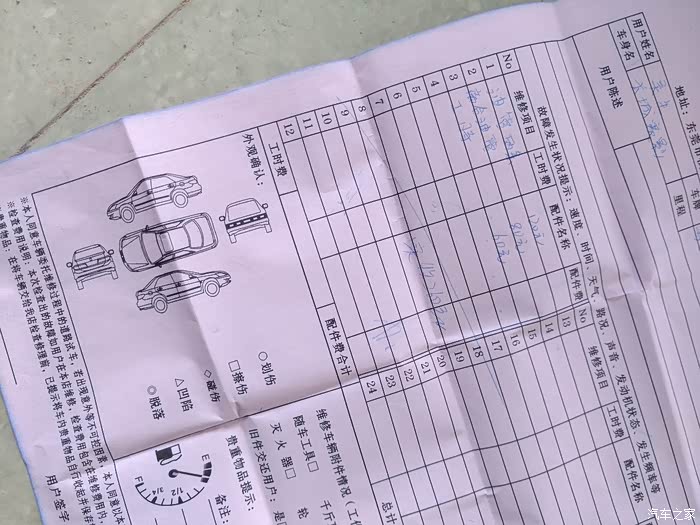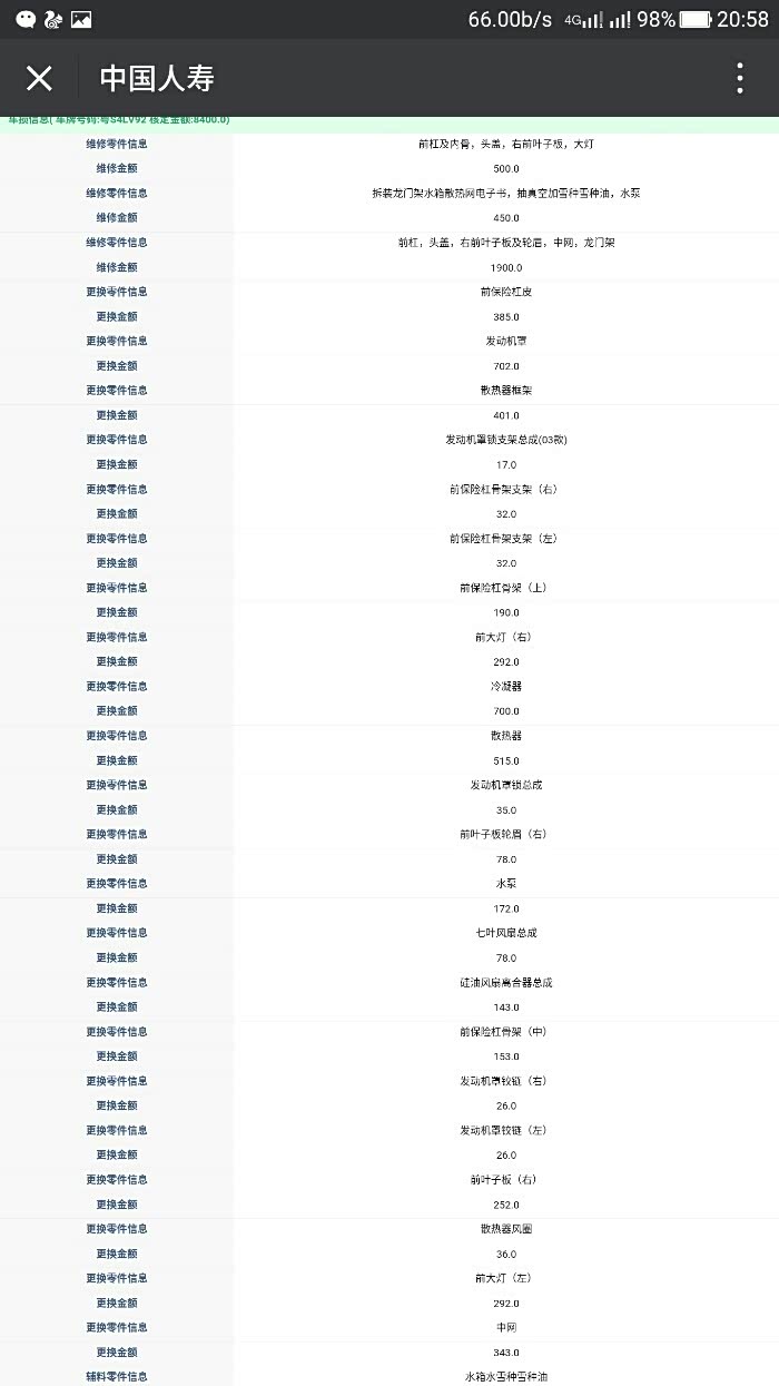 出了车祸换了在少配件