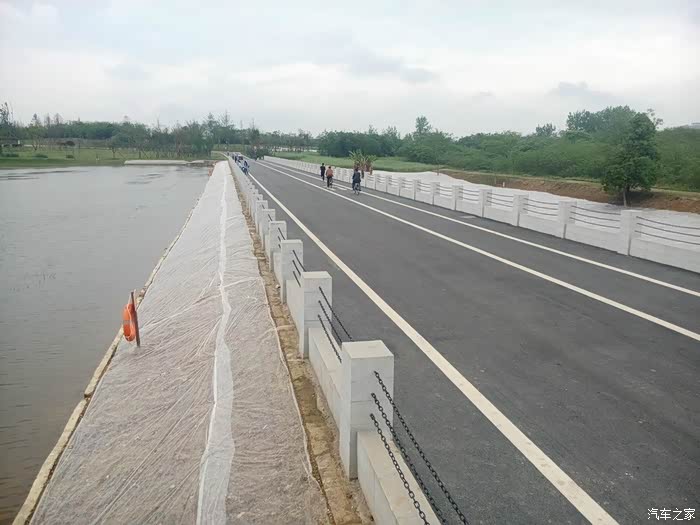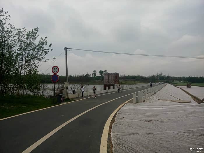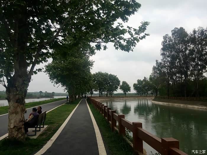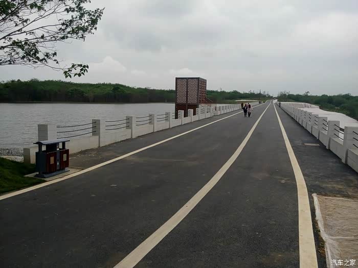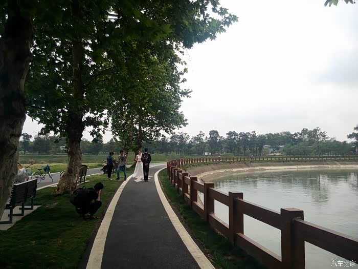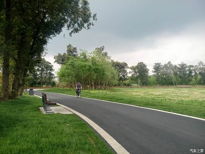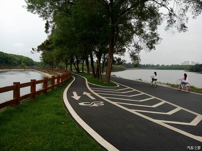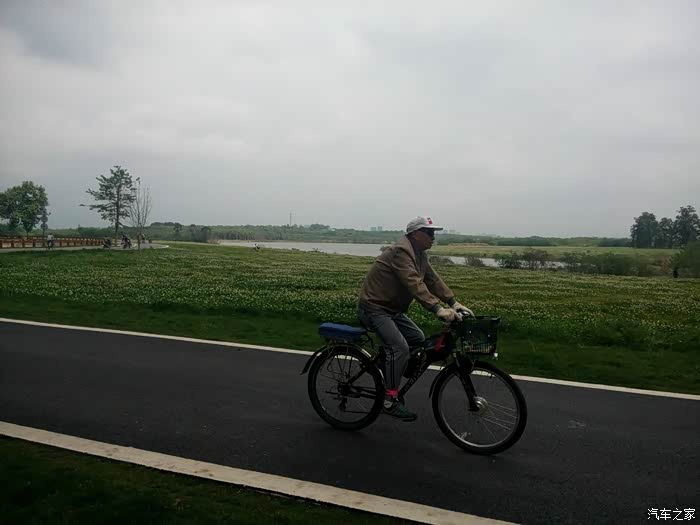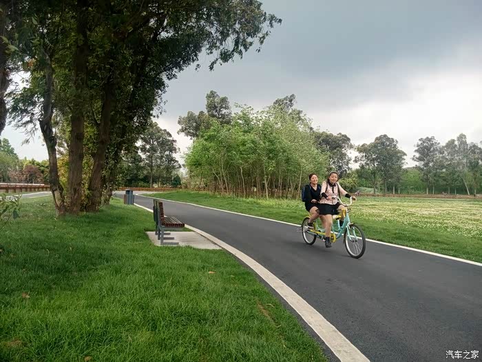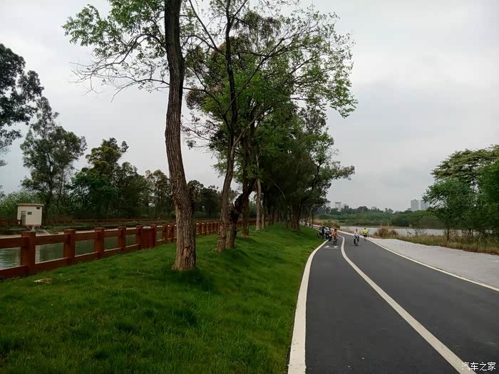 湿地公园里骑行的人……