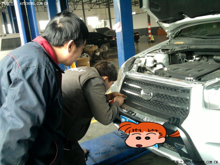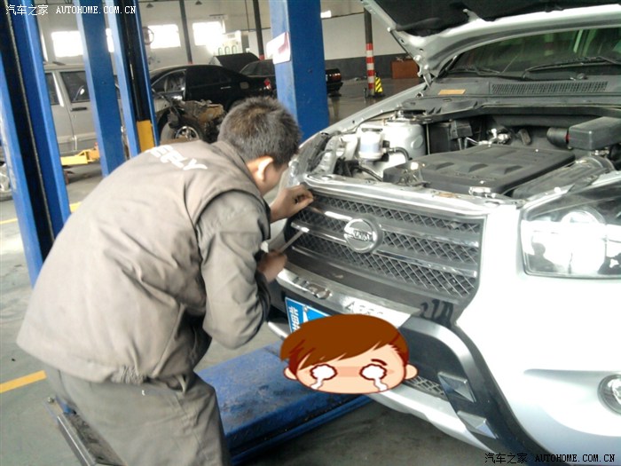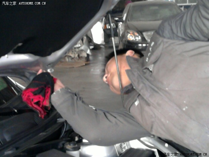 来到服务站,按昭程序,开好了派修单,上次接待mm帮着把情况反映给了换机油的师傅,还有钣金师傅(换中网)。首先是小李师傅检查了机油的多少,说是多加了点,说不好意思。我说没关系。于是马上就把多加的机油放出来了。