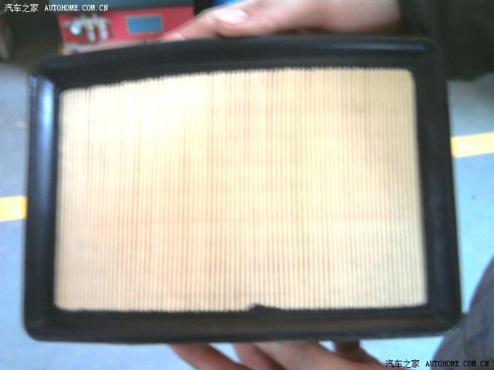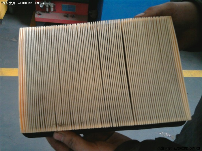 这是卸下的原车空滤正面,不算脏。厂家这个首保中不给换的,可以清洗,也就是吹吹尘土。