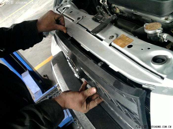这是曾经在贴子里说的中网格亮条起包的地方。当时没货,师傅帮俺订了新的,两天后就电话通知俺货到了,随时可以来换,非常满意,够快的。下面有专门的图片和说明。