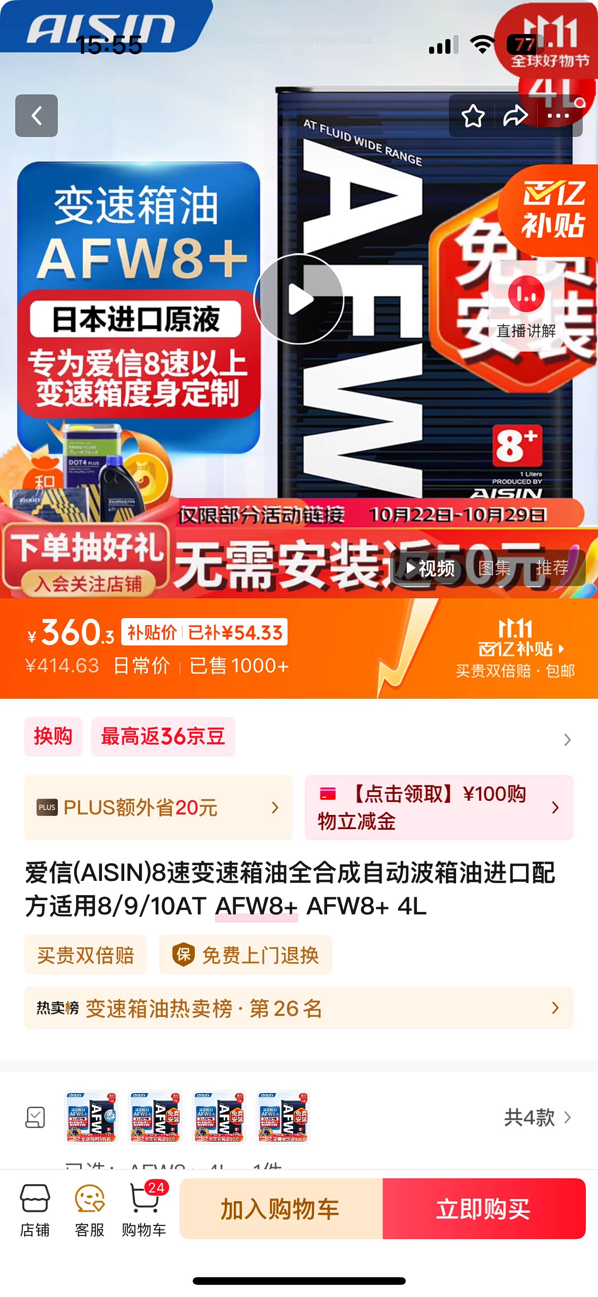 不想到4S挨宰了,在某东看了很久,一直在采埃孚AV8和爱信AFW之间犹豫,最后在抖音上看到有个商家说爱信的变速箱用爱信变速箱油更合适,而且F49这款X1的爱信8AT其实是和6AT改进而来,变速箱油是通用的,觉得解说得挺专业的,所以最终选择了爱信。