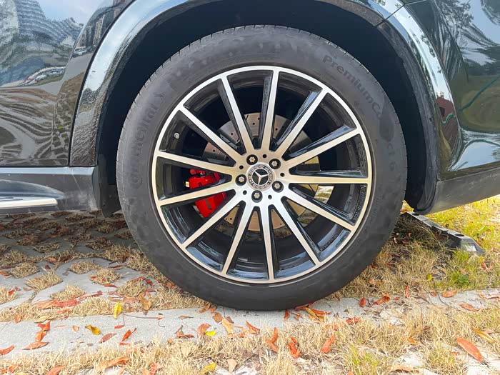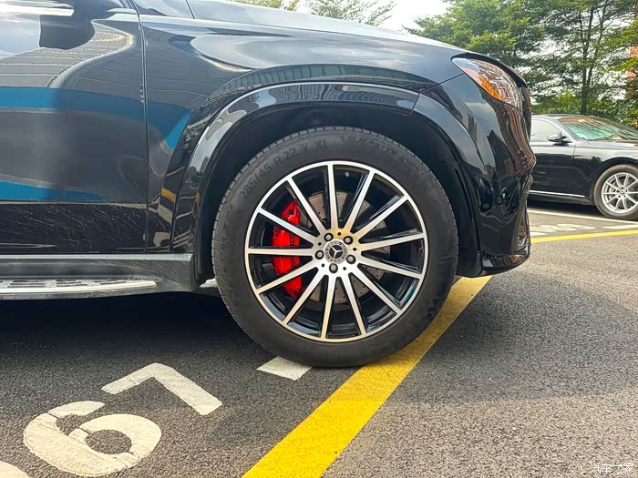 奔驰GLS450升级AMG原厂前六后一刹车卡钳,还没升级前,奔驰GLS原车的刹车卡钳活塞面积较小,在施加相同的制动压力时,产生的制动力相对有限。而升级了前六后一后的刹车卡钳,其较大的活塞可以推动更多的刹车油,使刹车片更有力地夹紧刹车盘,从而缩短制动距离。这在高速行驶或者紧急制动的情况下,能显著提高行车安全性。