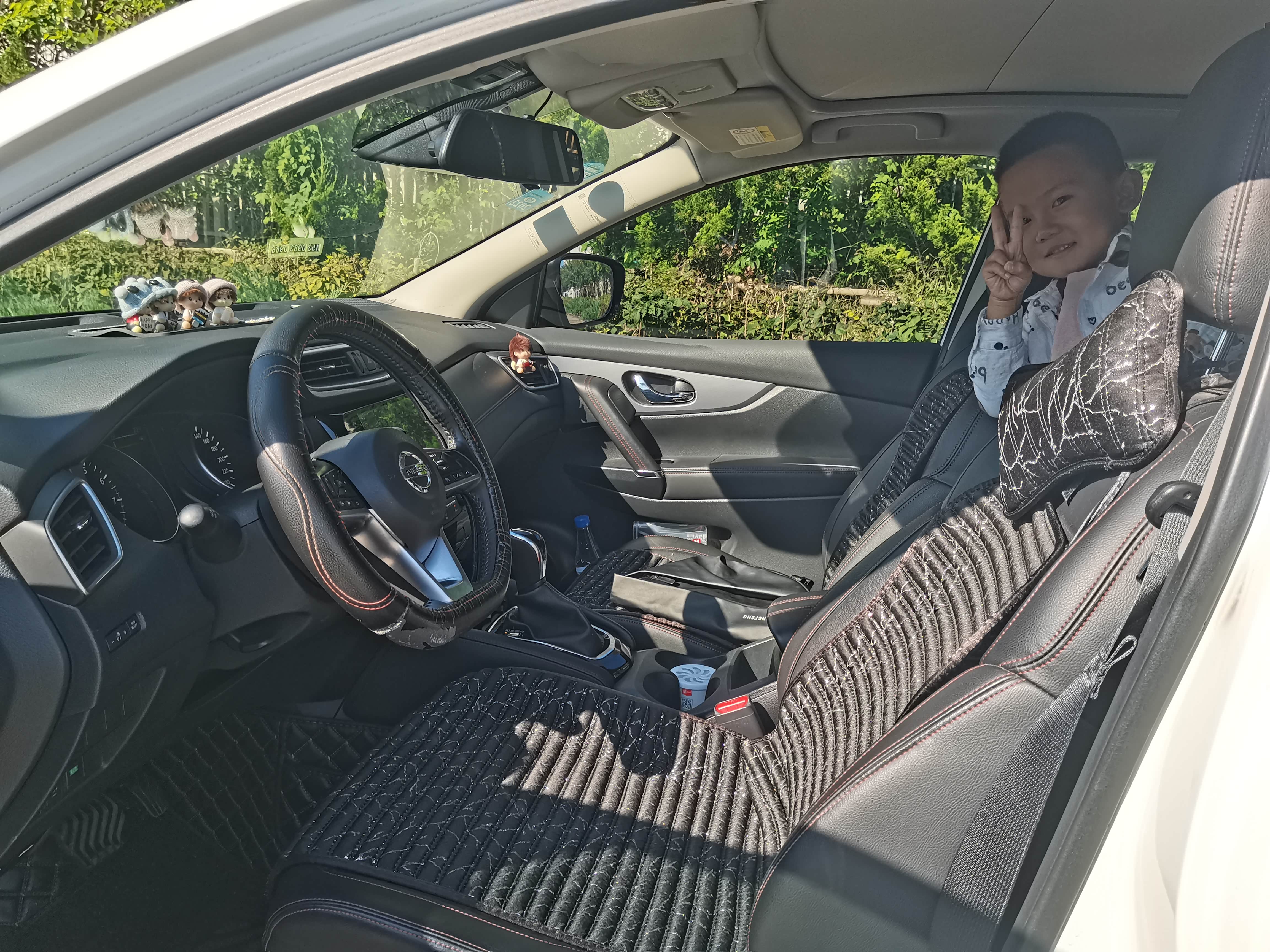 关于外观,我选的是白色款。其实白色是主流色,但珍珠白需要加2000块钱。车身设计整体看着中规中矩,作为家用SUV来说刚刚好。豪华版的配置还可以,比如有360全景影像、多功能方向盘、主动刹车、胎压监测、车道偏离预警、变线辅助等等。这些功能在我新手初期特别管用,比如360影像让我在地下停车场停车轻松了很多,还有车道偏离预警让我第一次上高速时避免了不少失误。不过逍客原车没有倒车雷达,我是在一次倒车剐蹭之后紧急加装了一个。现在每次倒车都会有提示,方便多了。豪华版没有行车记录仪,也是我后来自己选购加装的,大概花了300块。