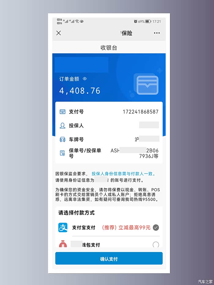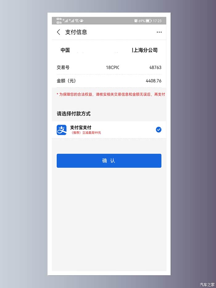 选择支付方式点击“确认”