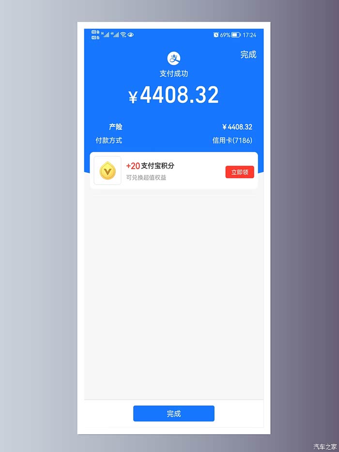 支付完成,续保抵扣与现金返还在支付完成后再返还