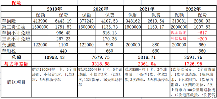 上海的保险公司一般都有赠送小保养的活动,使用3年经过4次保养,大众赠送的首保券是基础机油,530发动机需7升机油,更换全合成补贴469元,其余3次都是保险公司赠送,同样需要补贴差价,4次小保养共花费1876元