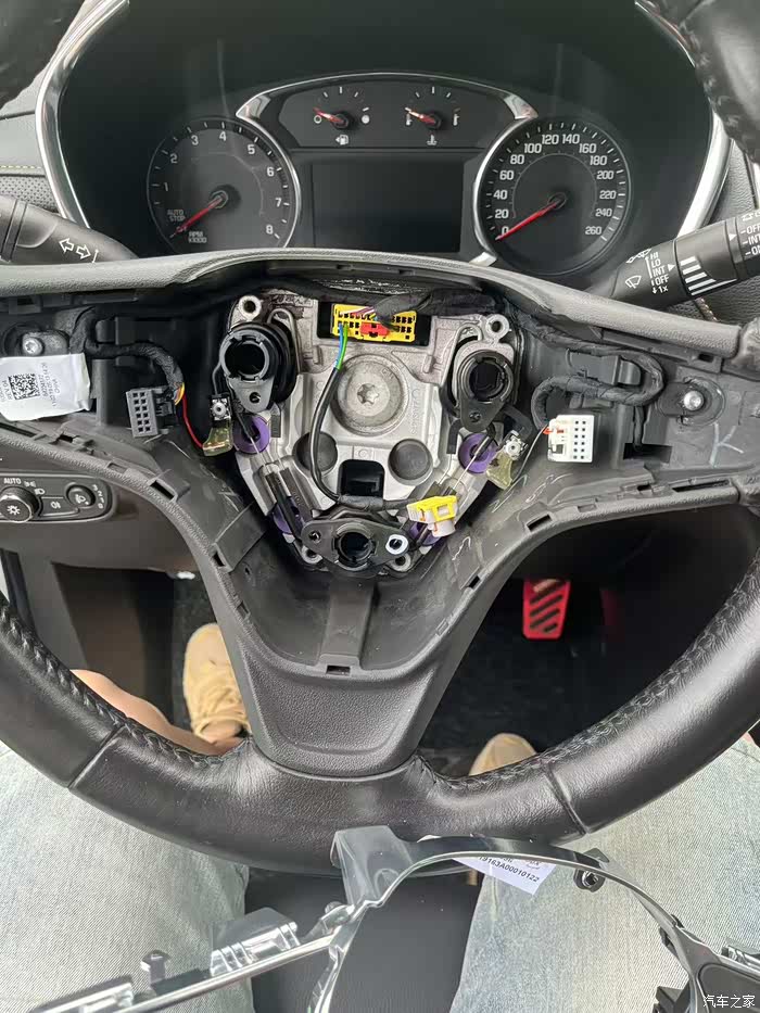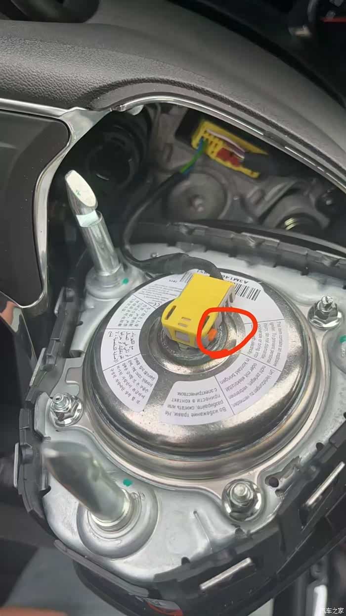 3,拆主气囊,开车门,调座椅到最后,开左右车窗,开机盖,协下电瓶负极,最后用个绝缘的包下负极头。用自做的工具插入方向盘下,左右,各有一个小洞,同时用力顶下,安全气囊就弹起来了,轻拿起,后面还有根线。