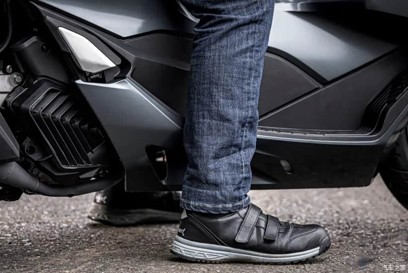 骑行姿态方面,相较PCX150,前脚空间先前增加了30mm,双腿可以向前伸展的幅度更大一些;在764mm的低坐高加持下,视线自然向前,而且双脚能够自然着地;在骑行过程中会有一种心理上的安全感,这也是骑过PCX的车友对它中意的地方之一;而且从之前的150改为160之后,因为车架更换,后轮虽然从14英寸缩小到13英寸,但宽度有所增加,另外就是后减震行程增加到了95mm。