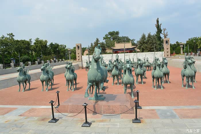 早上起床后退房,找点早餐吃,计划好路程,出兰州时看看黄河儿女像,黄河大桥,直上高速去武威.到武威的途中游览了西藏归属中国版图的历史见证地:白塔寺,凉州会盟就在那里.到武威市区后参观了雷台汉墓,那里出土了国宝级文物:马踏飞燕,增长了见识.