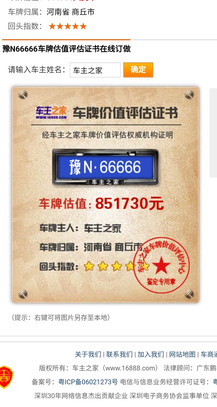河南商丘豫n66666这个车牌值多少钱