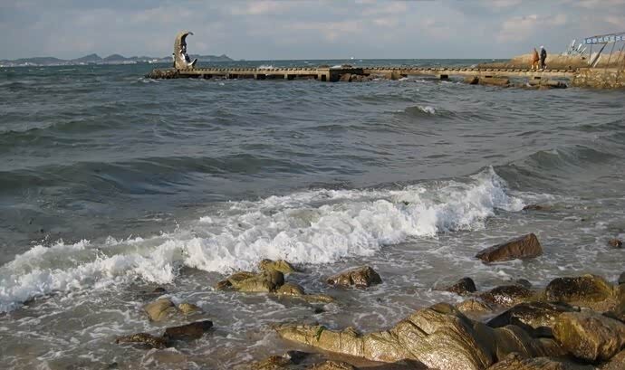 以前在市区工作的时候经常去月牙湾,听说摸一摸能天长地久,没有男朋友和闺蜜一块去,祈祷我们的友谊天长地久。月牙湾公园又称半月湾,长约2千米,宛如一勾巨大的新月。园中的主要建筑为一座高20余米的中西结合式的“月牙亭”,矗立在峭壁之上的“观澜亭”和长约千米的长廊。月牙海滩除了是天然的海水浴场,还是全国罕见的砾石滩,到处是色彩斑斓的球石。这里可以说是一个珠光宝气的球石世界,洁白的如美玉,晶莹的赛琥珀。整个海滩就如珍珠玛瑙铺就让人流连忘返。1979年,叶剑英来长岛,为月牙湾题词:“内长山岛月儿湾,勤车渔农并石田,昂价球石生异彩,妇孺岂情指头艰”。不信,您看: