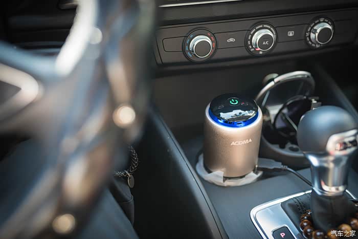 接下来是车内评测,媳妇的奥迪15款A3虽然已经购入一年多,但是还会存在异味,一汽大众在“315”之前也已经发表声明,可以免费更换新改进的隔音材料,但是换隔音材料要拆四门,了解改装的人都知道,原厂的车门接缝是最小的,只要拆装过,接缝势必会变大,作为强迫症的我,还是通过车载净化器来改善吧。
