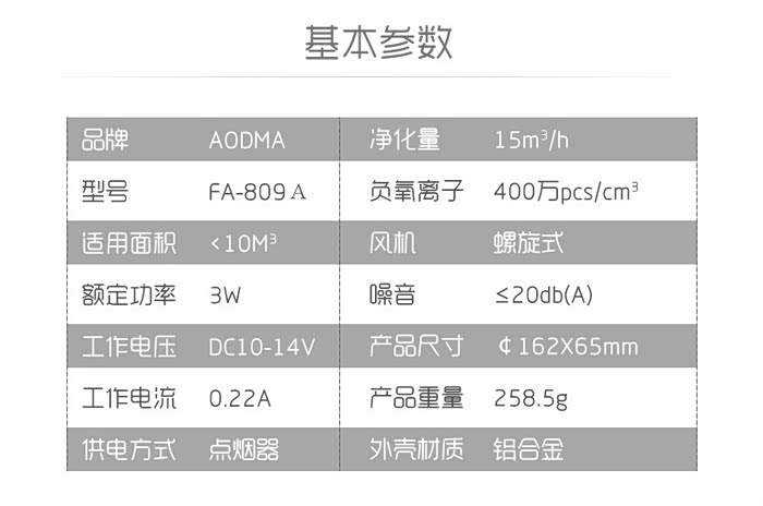 优点:无耗材、高颜值,用料上乘,一拖二的usb功能,摆放位置相对隐蔽提高行车安全,强大的负氧离子释放量,性价比高
