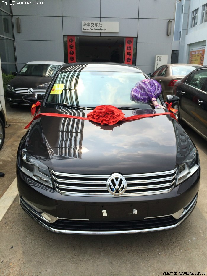 7月27日(周日),开着我家小狮子载着LD直奔一汽大众4S店,第一家店(欧亚)一小伙接待,“迈腾没样车,试驾车不在,也没现车,现金可以优惠1W”。得到这些信息后,开车走人。第二站来到华宏一汽大众4S店,这天靠车展,4S店内菜市场似的,人是那么多啊。我和LD进去后直奔迈腾,坐进迈腾里面第一感觉都很满意,扎实稳重大气。由于内心已选定迈腾,几乎在没试驾的情况下就跟销售mm开始砍价了。还是销售mm细心,说你们俩还是先试驾下,感觉好定下来后我们再谈价也不迟。试驾过程对迈腾很满意,加速比我1.6的307强多了,动力对我们而言看来是足够了。现车领先版有摩卡棕(黑内),豪华版有黑外(米内)。领先版也基本满足我们家的需求,真皮座椅,天窗,多功能方向盘,安全配置跟豪华版比一个都没少,就少了定速巡航、日间行驶灯、自动空调,感觉对我们日常使用影响不大。加上LD对米内很反感,所以就选定摩卡棕了。之后谈价格,现金优惠7800,裸车21.2w,保险送5000,送飞歌导航、3M膜、坐垫、脚垫、镀膜,就这些了。在谈价时也就看了下汽车之家中迈腾领先版中各位车主在口碑中的报价,感觉差不多,交了1000定金走人。