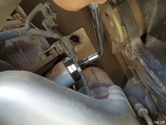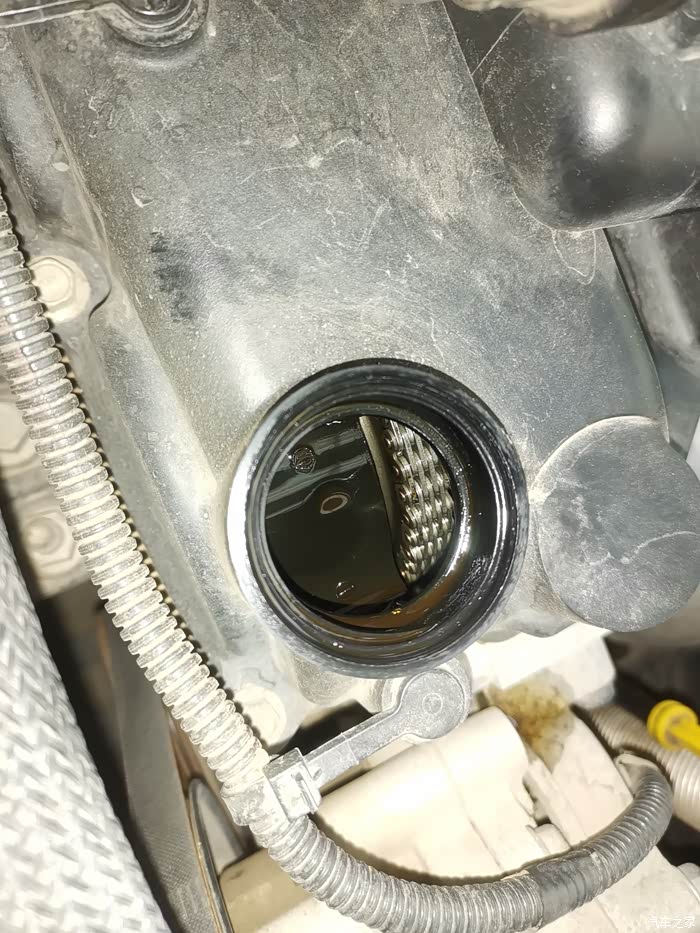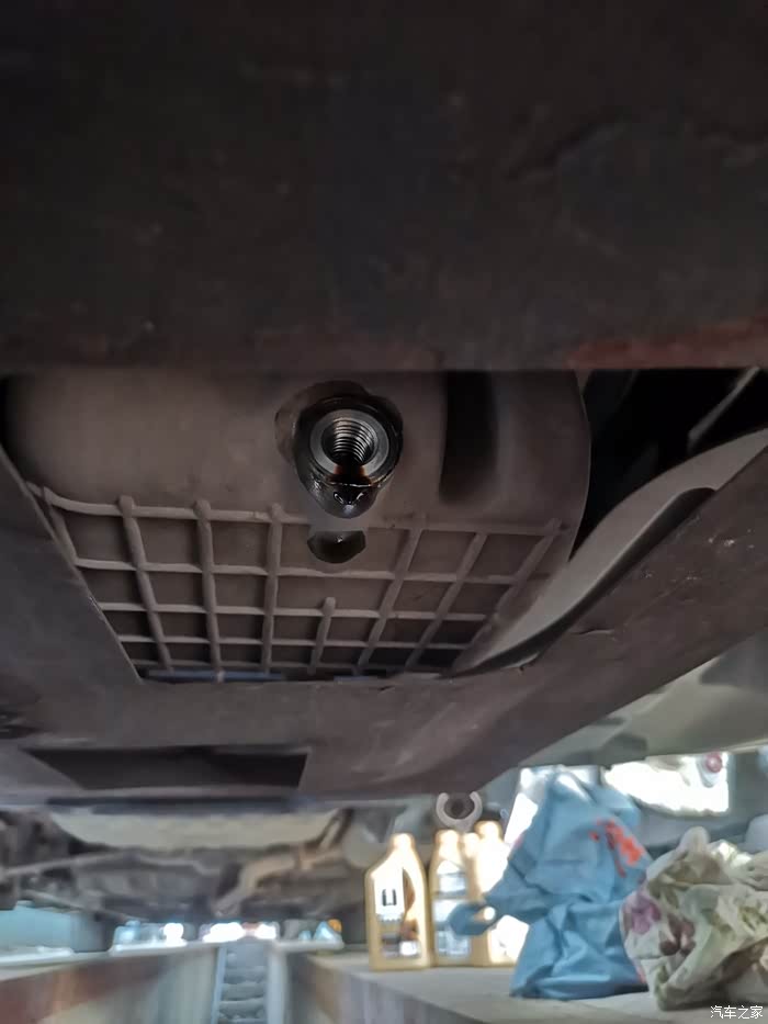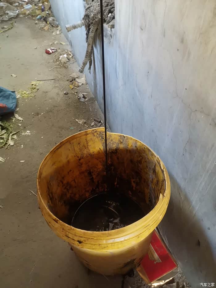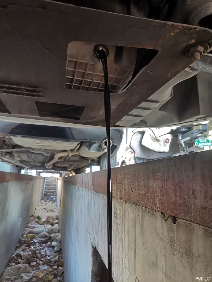 这次是自己动手保养的,所以放机油的时间延长了很多,放机油放了45分钟。看着旧机油还是滴的不算太干净。