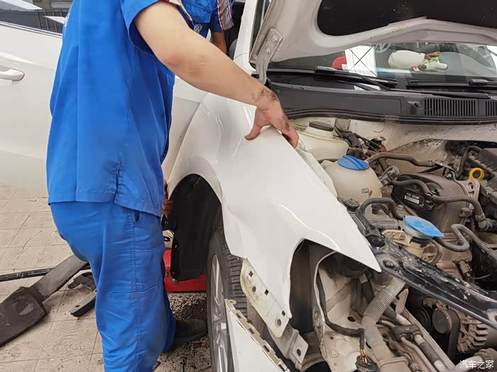 最后经过拆解,需要更换大灯、更换右前翼子板、前保险杠做漆。