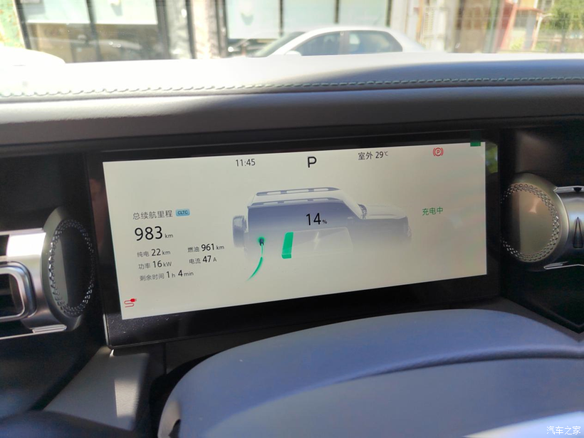 仪表盘上是充电信息,当时还剩14%,显示充满是1个小时。