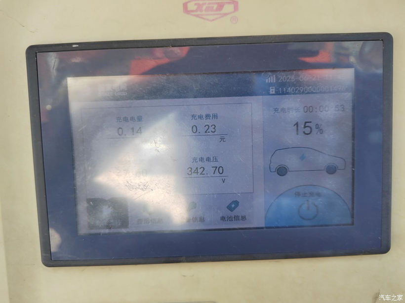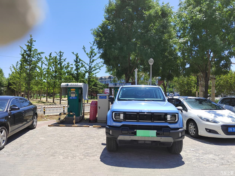 这是夏天刚提车的时候第一次在外面充电。当时刚提车,正在外面玩,纯电续航已经只有百分之十几了,就近找了个充电桩。