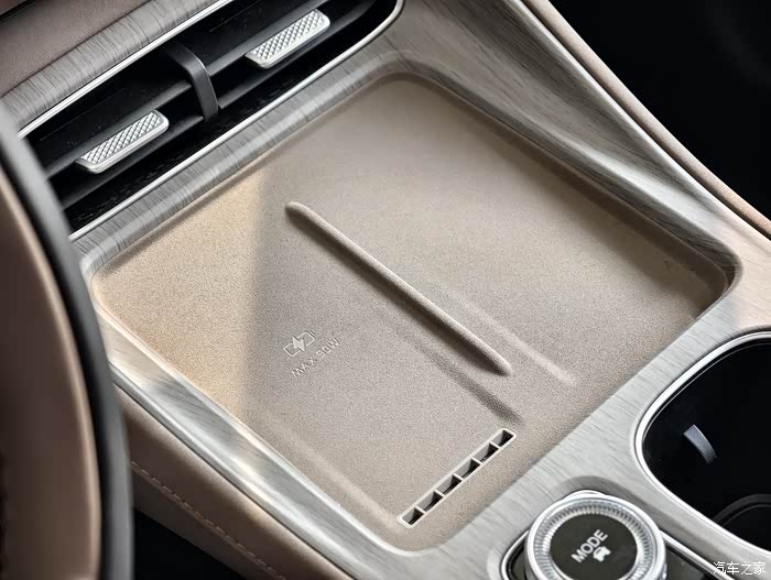 浅棕色配色的无线充电区域比纯黑的经典配色多了那么几分个性和高级