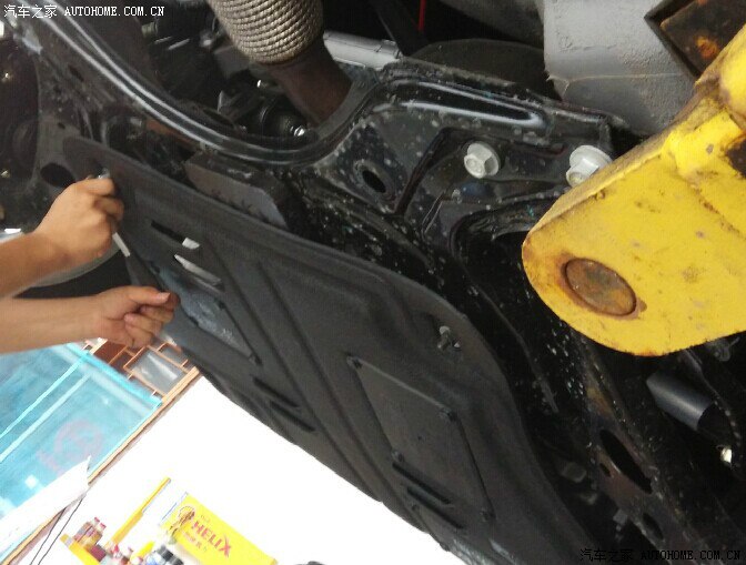 金科发动机护板,虎5的变速箱和发动机底部是裸露的,不踏实,装~!友情提醒,原车护板不拆除,直接换螺丝装,我找的一个维修点,第一次搞,把原车护板拆下来又装上,折腾三个多小时,,晕~!