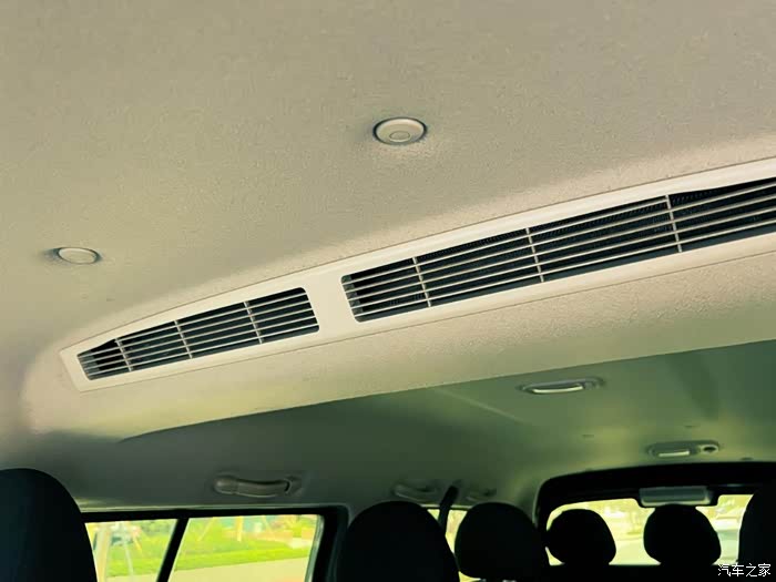 我这台车是7座的,车内空间又比较大,所以空调这块的设计也很精妙,直接在前排顶部弄了一个中央空调,前后都有出风口,向后分别是6个分别手动控制的出风口并排设计,向前则是主副驾驶各一个大的出风口(不可手动控制),再加上中控台还有几个(可分别手动控制),整体来说全车都可以有很好的制冷制热效果。