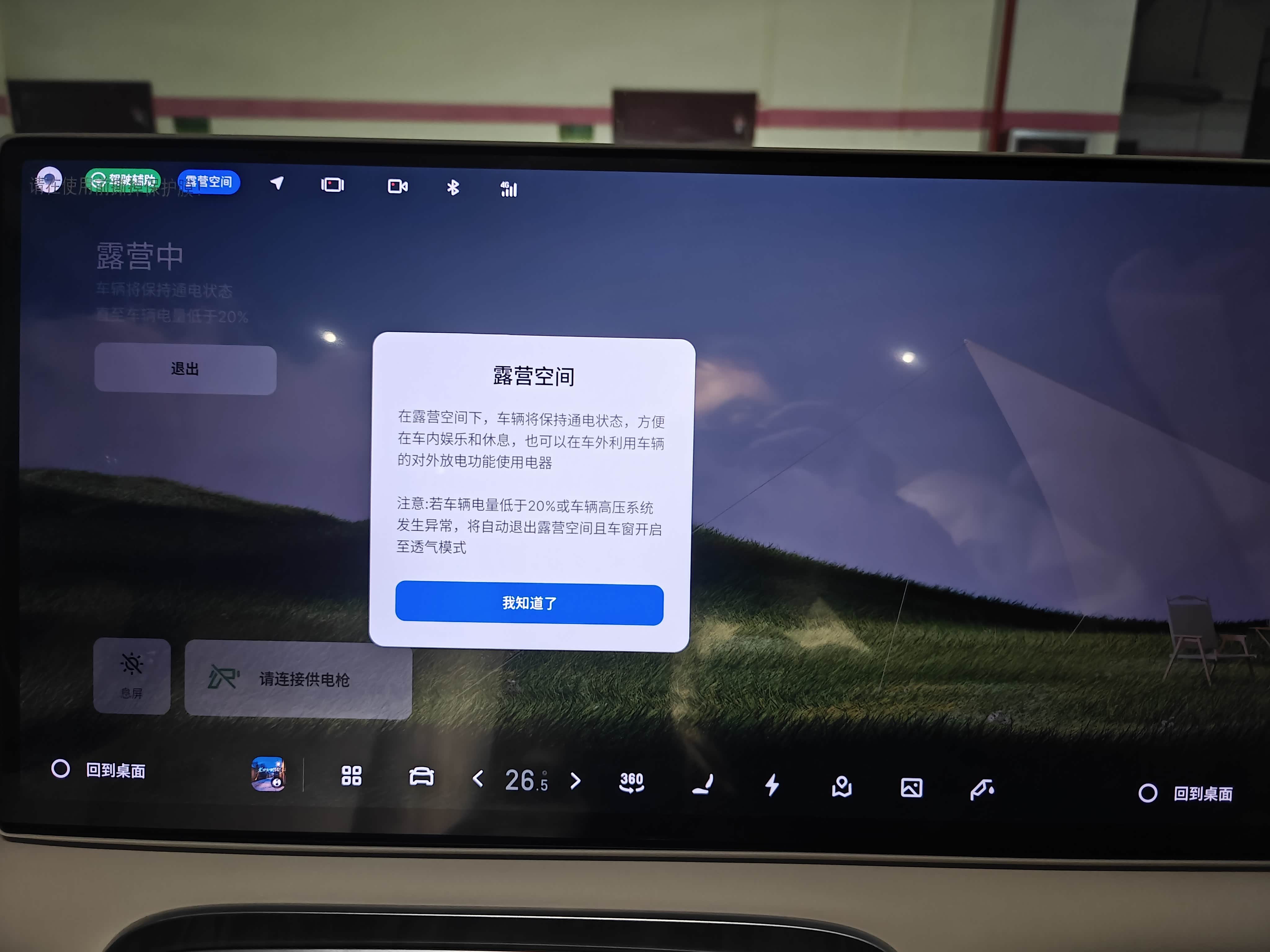 Flyme Auto2的场景化模式真的戳中痛点,不用手动调节一堆设置,一键就能切换,露营模式:周末去郊外露营,打开后自动断开行车电源、开启座舱外放电(220V)、调节灯光氛围,接个电煮锅煮火锅、连个投影仪看电影,户外氛围感直接拉满,不用额外带电源,太方便了!