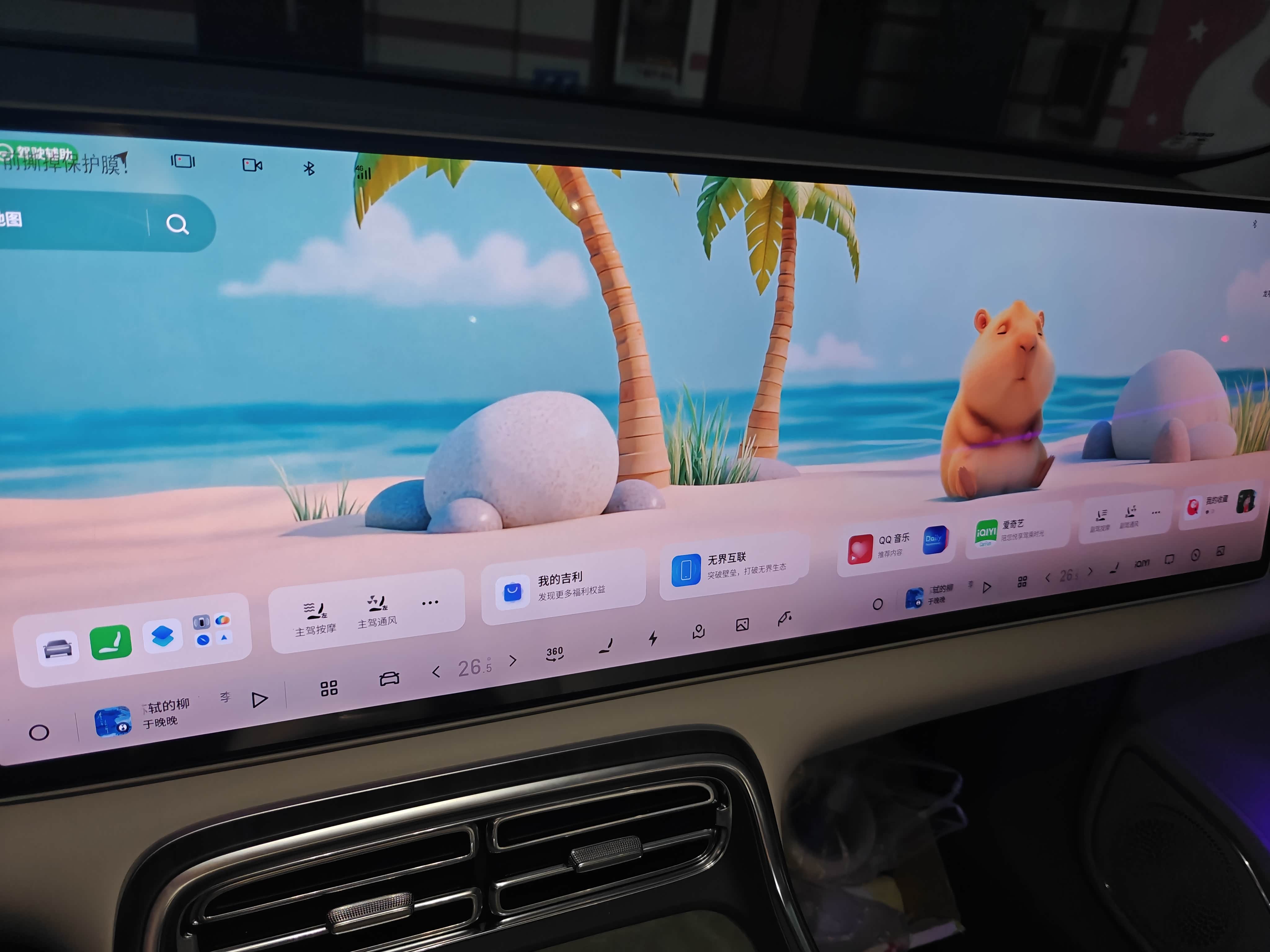 Flyme的互联生态真的没话说,安卓、苹果手机都能无缝连接,不用下载复杂APP。手机上没看完的视频、没听完的歌,上车后自动同步到车机,断点续播不卡顿;手机导航直接“甩”到车机大屏,不用重新输入地址;就连手机里的照片、文档,也能一键投射到贯穿屏,和家人朋友分享超方便。