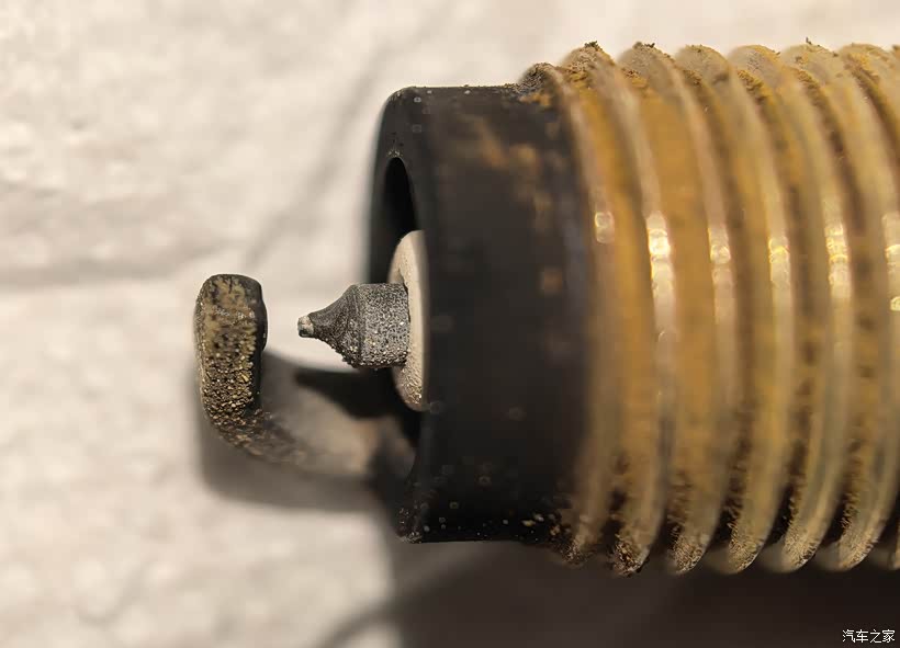 火花塞贵金属烧得还算正常,但有不少棕色颗粒的积碳