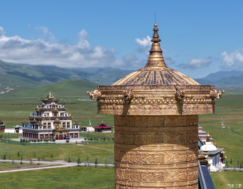 玛曲县阿万仓湿地的宁玛寺,建有世界最大转经筒,得几十个人一起用力才能转起来。
