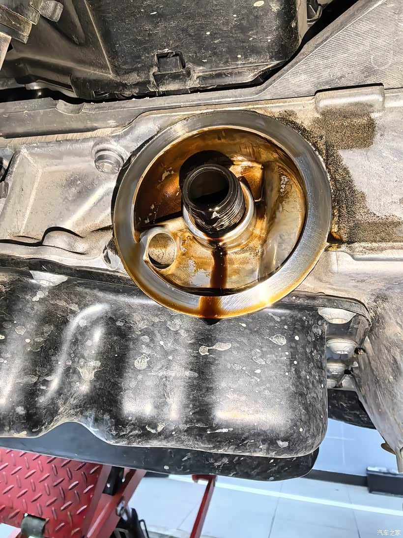 取下放油螺栓,放出的机油够黑,还能有一点透亮