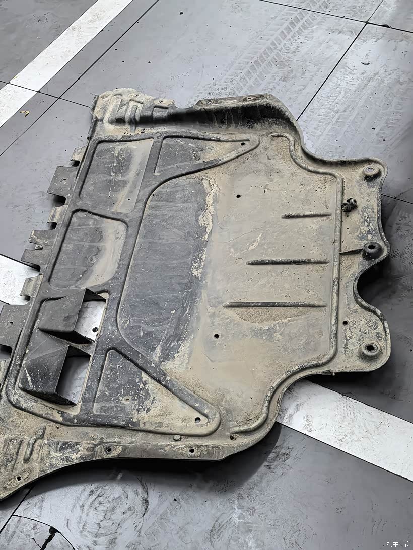 发动机下面没有油渍,检查拆下来的护板,也没发现明显的油渍,再观察看看吧。护板有帮变速箱散热的通风口