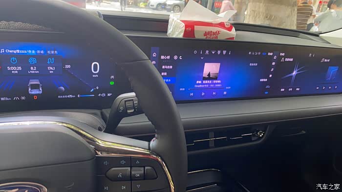 坐进车内,1.1米的巨幕屏直接把我震撼到了,12.3英寸全液晶仪表盘和27英寸4K中控屏连在一起,显示清晰,操作流畅。SYNC+智行互联系统功能丰富,语音识别控制精准度高,一句“你好,福特”,就能轻松实现导航、播放音乐等操作,简直太方便了。