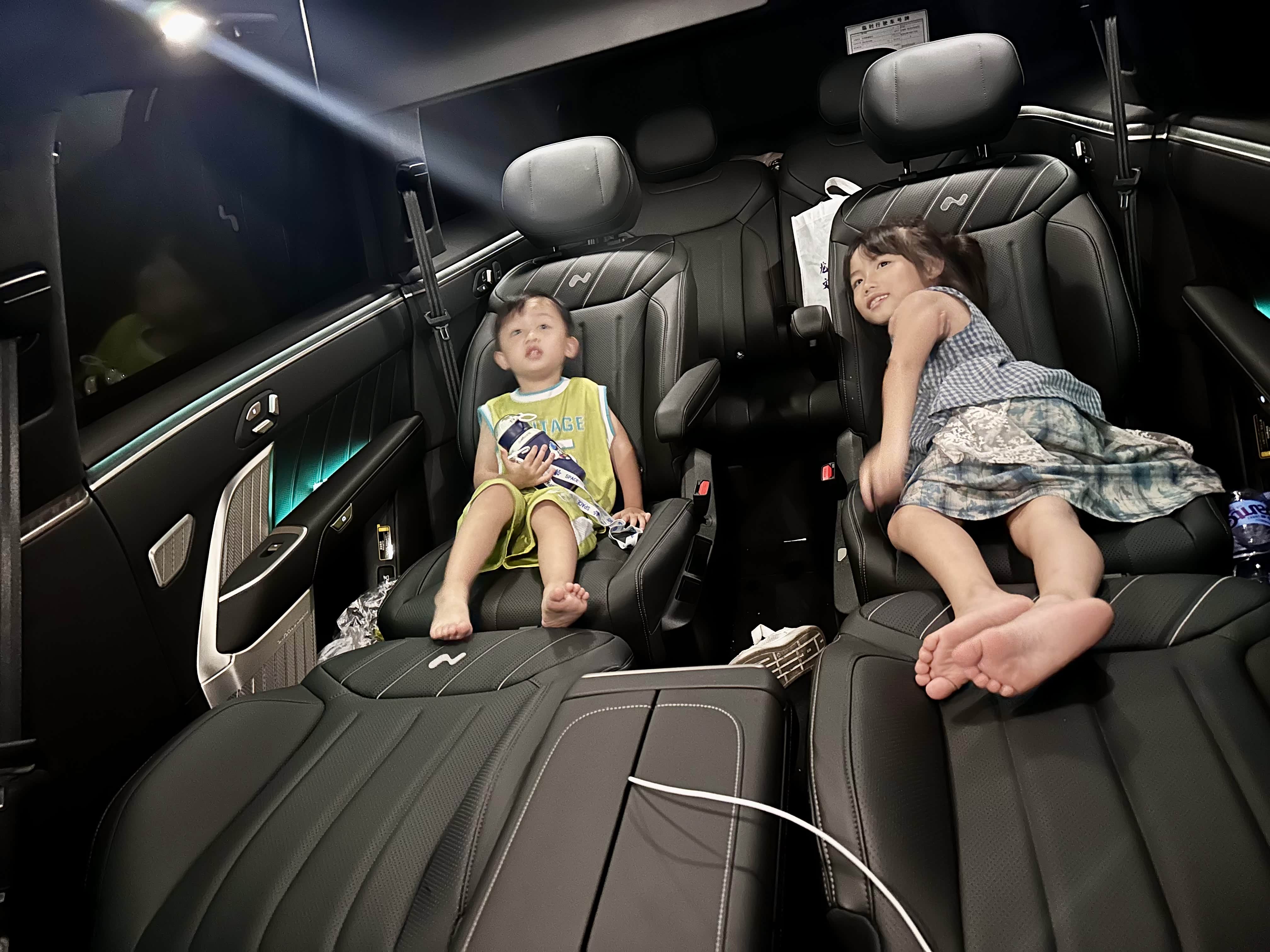 3:车内空间确实是大,6个大人坐上去几乎没问题。前后都可以放行李空间是很可以的。经常使用场景就是前两个座椅放倒,直接躺着,可以看电视,也可以玩小游戏