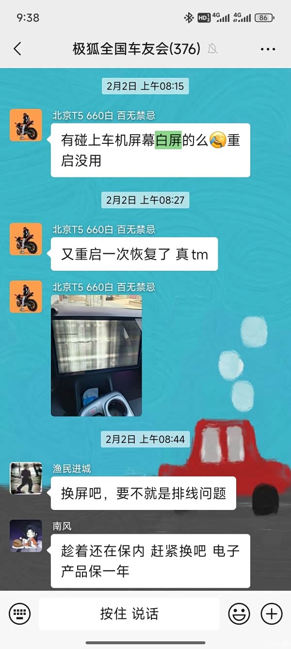 车机系统在正常使用中出现花屏问题(附图/视频),需重启车辆才能恢复。该故障存在极大安全隐患,4S店检测后称“系统正常”,未对硬件进行排查。