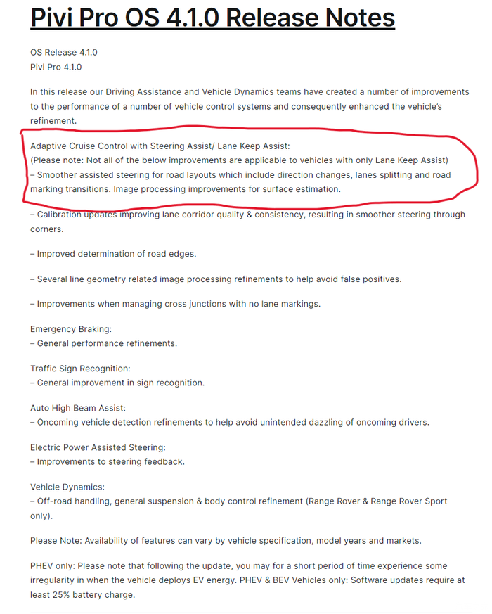 带转向辅助/车道保持辅助的自适应巡航控制系统:(并非以下所有的改进,都适用于仅具有车道保持辅助功能的车辆)——为道路布局设置的更加平滑的辅助转向,包括方向改变,车道分割和道路标志的过渡。为表面预估进行了图像处理的改进。