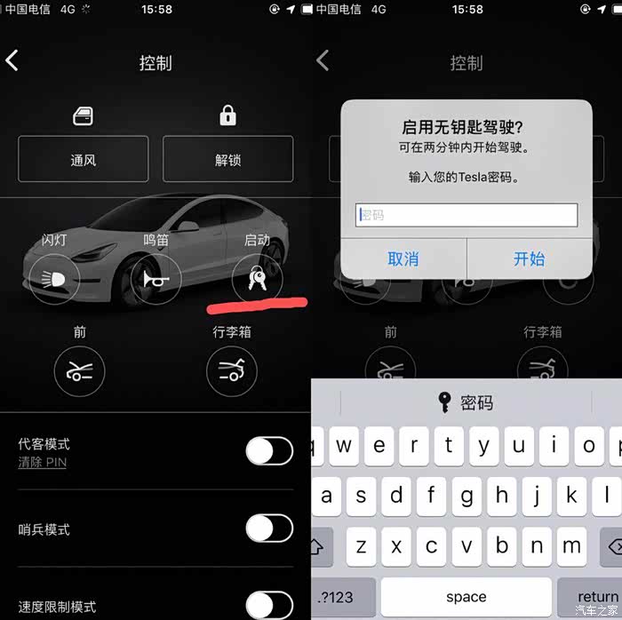 网络钥匙解锁的优点在于如果你的家人或者朋友要使用你的车辆,你出差了没办法把实体钥匙给他,这个时候可以点击手机APP上的启动,输入你设置的启动密码,就可以授权给别人,直接开走,是不是很方便。缺点就是没有网络不行。